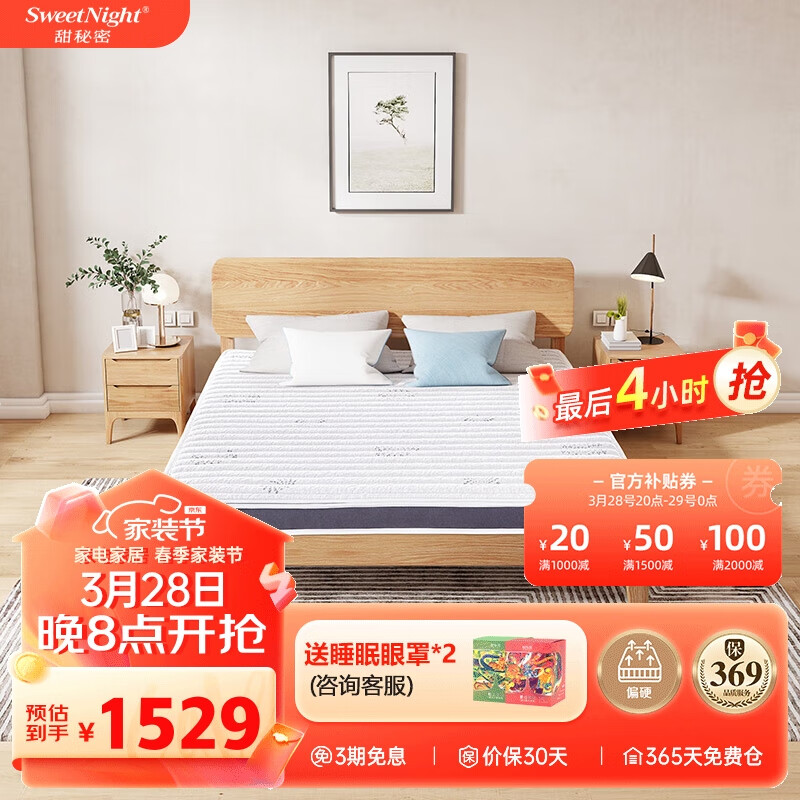 Sweetnight榻榻米床垫天然椰棕床垫5cm床垫子 可定制拆洗 甜秘密可拉1.5x2米价格:1529.00元!