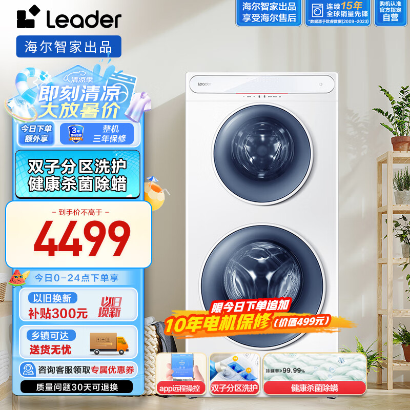 Leader海尔智家出品 4+9公斤 双筒滚筒洗衣机全自动 内衣儿童装子母分区 除菌螨TQG130-B99W3U1价格:4499.00元!