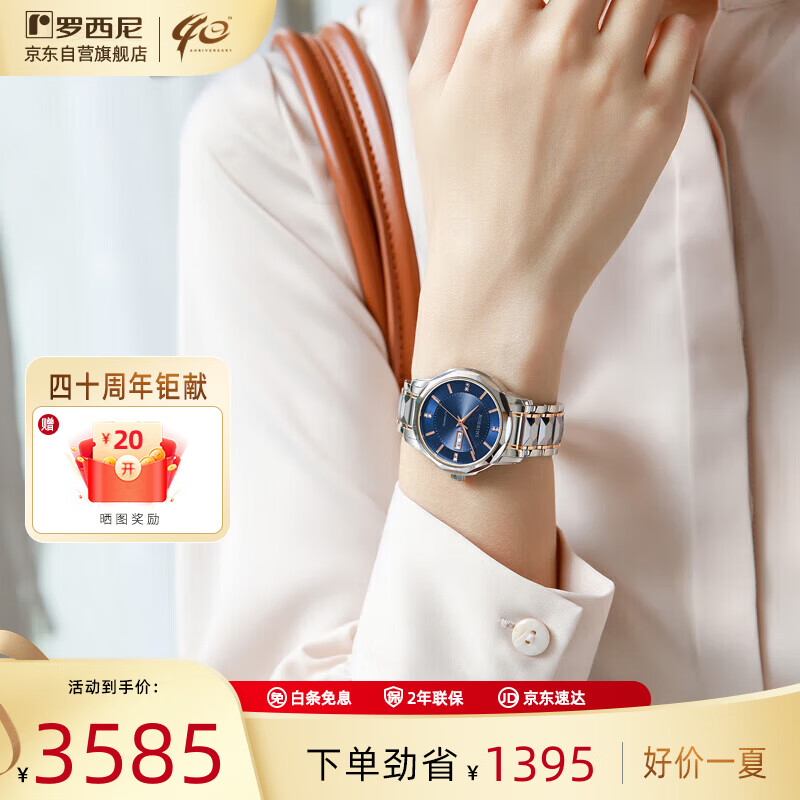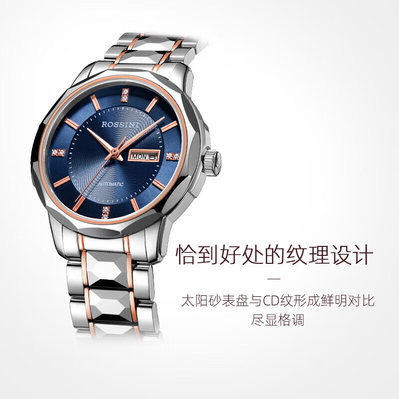 罗西尼(ROSSINI)手表女自动机械表蓝盘钨钢带生日礼物送女友国表商务防水 6890价格:3975.00元!