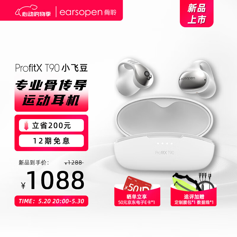 earsopen骨聆ProfitX T90小飞豆专业运动骨传导耳机夹耳式无线蓝牙不入耳开放式运动跑步防水 元气银价格:1288.00元!