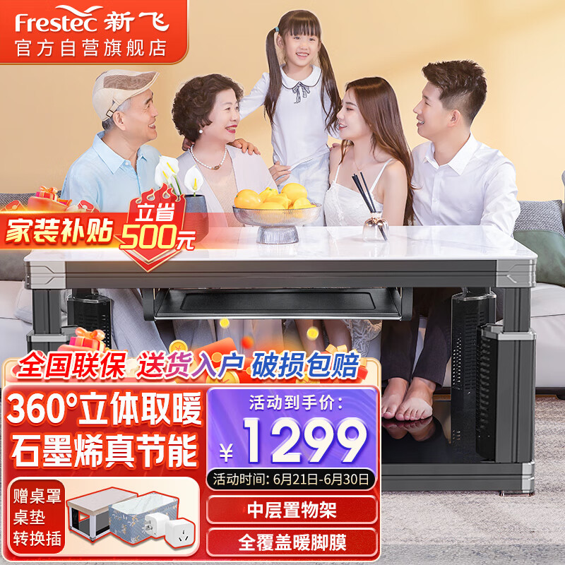 新飞电暖桌1.38米取暖桌长方形烤火桌带语音升降电烤火炉茶几家用节能电暖炉取暖器多功能餐桌XC-C3价格:1799.00元!