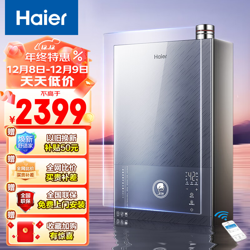 海尔(Haier)16升燃气热水器天然气双增压大水量零冷水超一级能效彩晶屏静音家用JSLQ27-16meta(12T)U1价格:2599.00元!