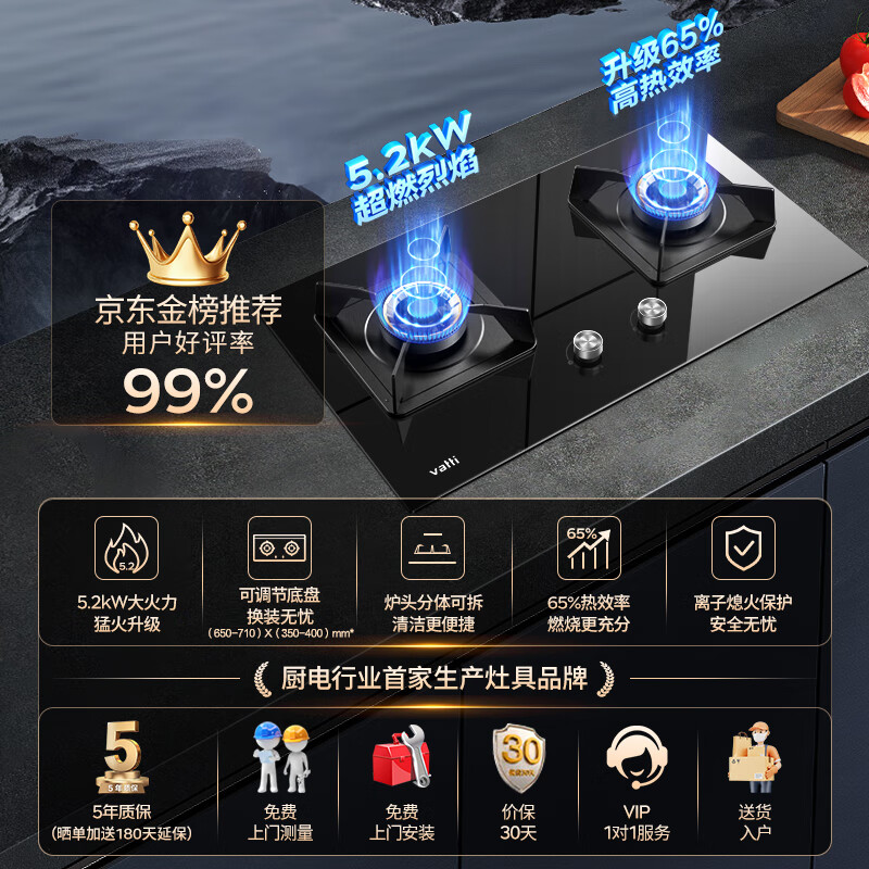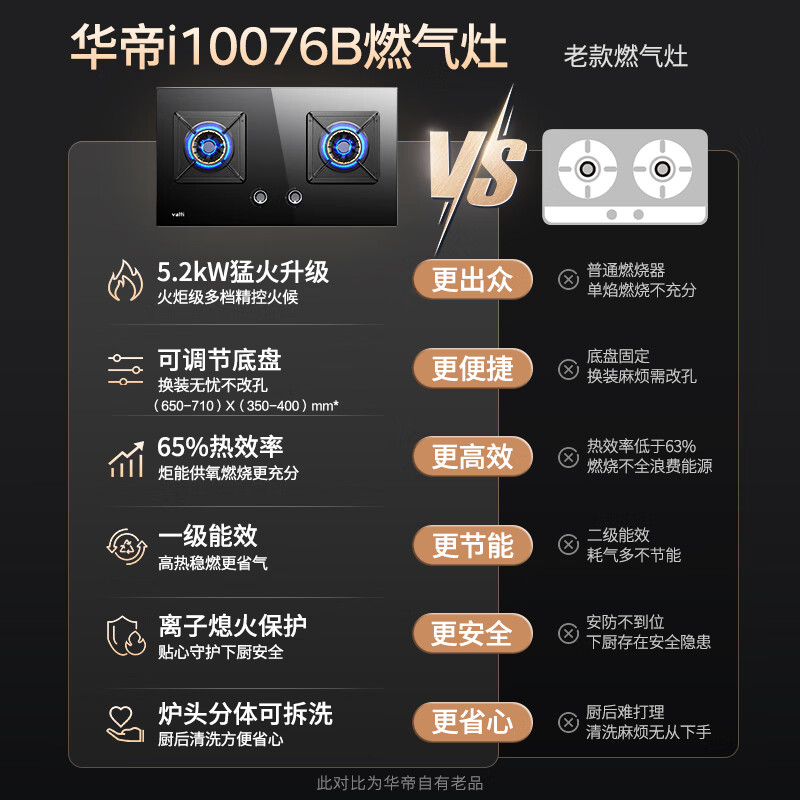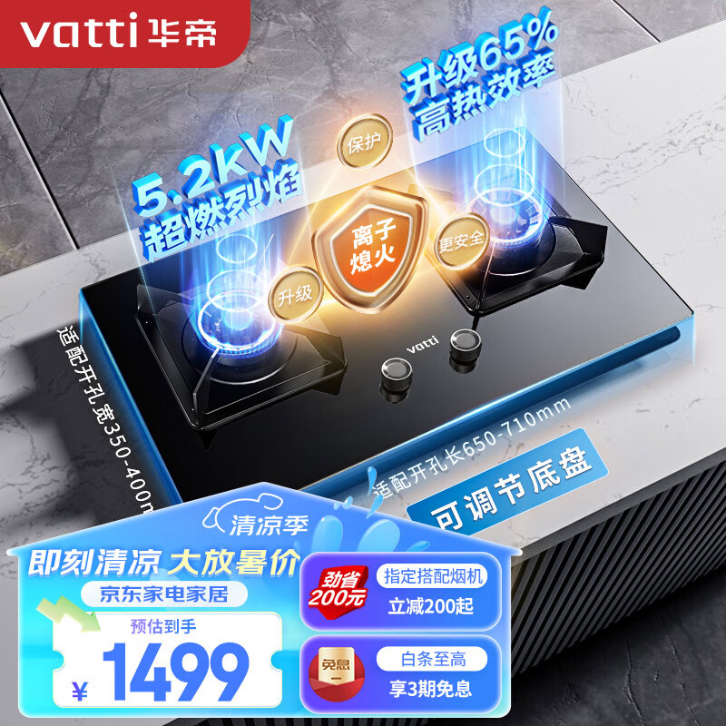 华帝(VATTI)燃气灶天然气灶家用嵌入式双灶具 5.2kW猛火台嵌两用换灶不改孔易洁灶台全进风JZT-i10076B价格:1599.00元!