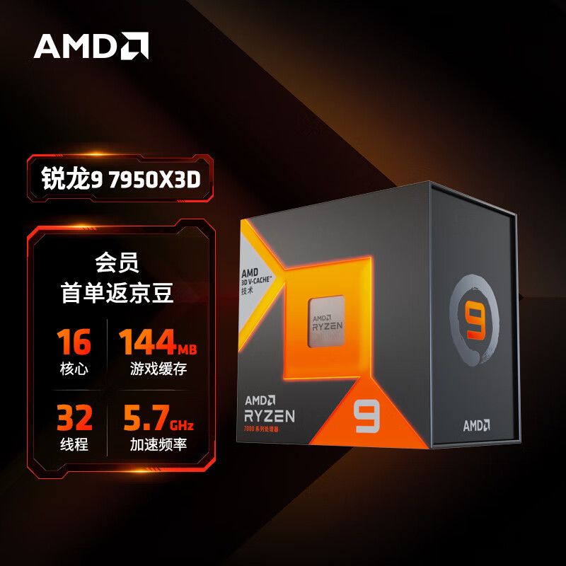 AMD 锐龙9 7950x3D游戏处理器(r9)16核32线程 144MB游戏缓存 加速频率至高5.7GHz 盒装CPU价格:3999.00元!