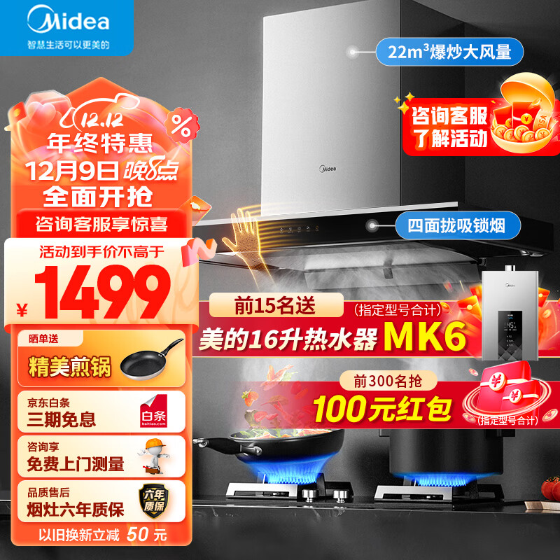 美的(Midea)抽油烟机家用 顶吸欧式吸油烟机 22立方大吸力 脱排油烟机 排油烟机 挥手智控 抽烟机 T36价格:1599.00元!