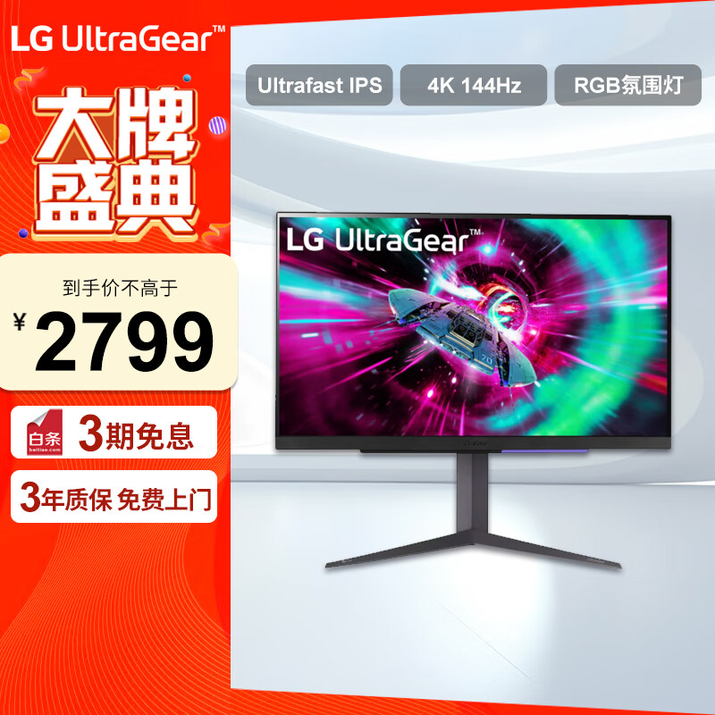 LG 27英寸4K 144Hz Ultrafast IPS 1ms GtG HDMI2.1 DTS音效 HDR400 10.7亿色 PS5电竞显示器27GR93U价格:2799.00元!