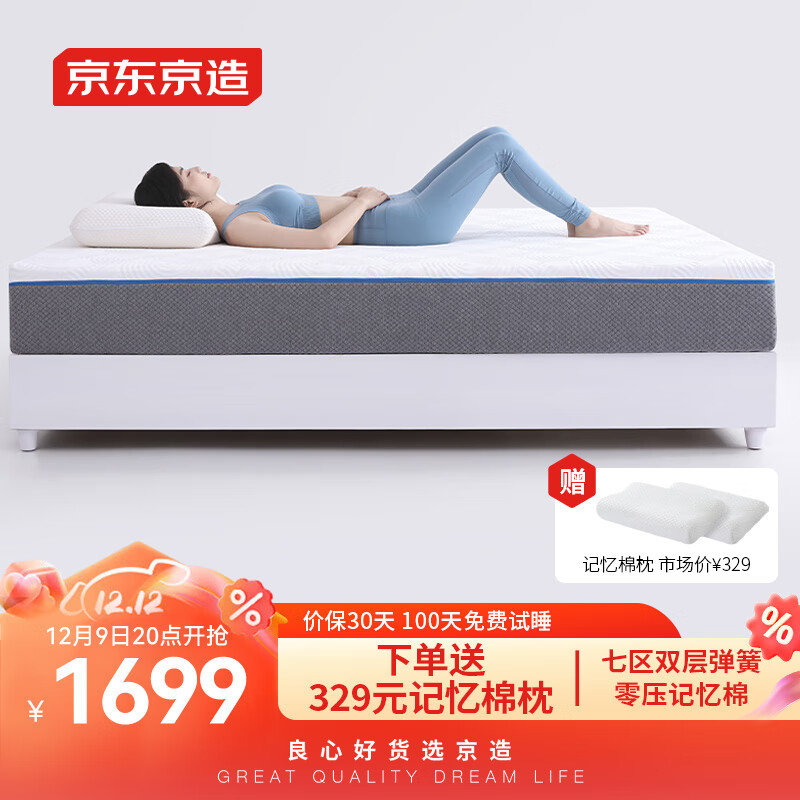 京东京造双层弹簧床垫1.8*2米 零压记忆棉软硬两用 席梦思床垫 老罗推荐价格:2099.00元!