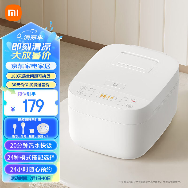 米家小米电饭煲家用1-2人/3-4个人 多功能电饭锅煮饭锅煮粥锅 智能预约 不粘锅内胆大容量4升 C1价格:179.00元!