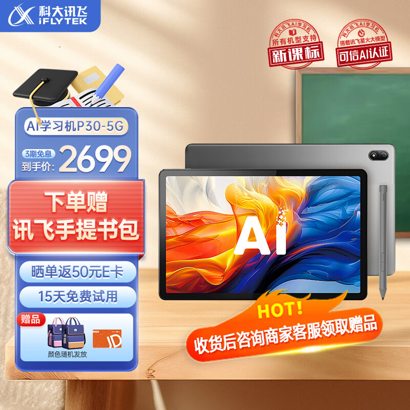 科大讯飞AI学习机P30 5G版 6+128G 小学到高中学生平板 全科全龄段学习机 护眼平板 英语家教机价格:2699.00元!