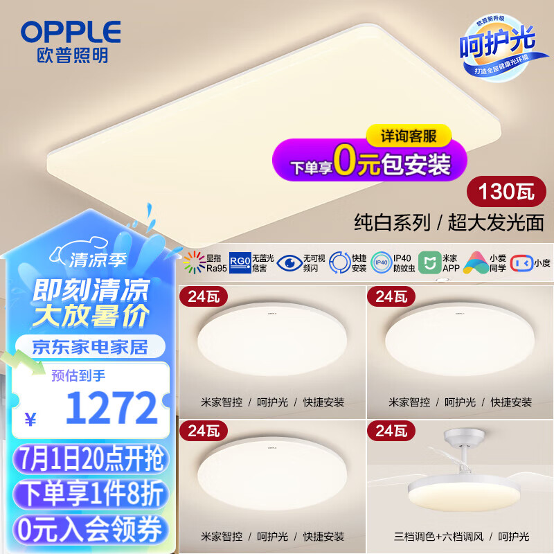 欧普(OPPLE)欧普照明(OPPLE) 吸顶灯客厅大灯米家智控LED照明灯具套餐8呵护光价格:1590.00元!