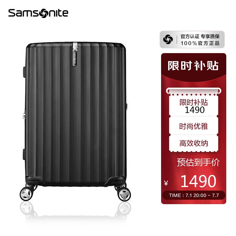 新秀丽(Samsonite)行李箱时尚竖条纹拉杆箱旅行箱黑色25英寸托运箱GU9*09002价格:2980.00元!