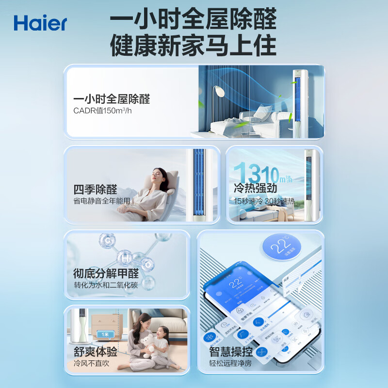 海尔(Haier)劲爽除醛空调 新一级能效变频 冷暖 客厅空调 柜机 KFR-72LW/A5LGA81U1 以旧换新价格:6999.00元!
