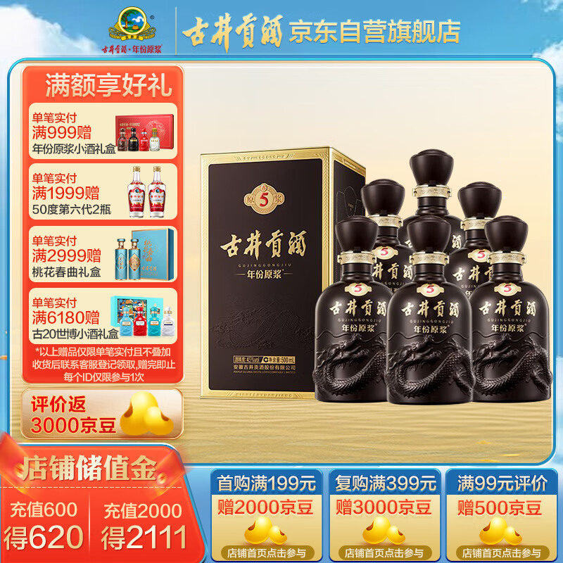 古井贡酒 年份原浆古5 浓香型白酒 45度500ml*6瓶 整箱装(含手提袋)价格:1000.00元!