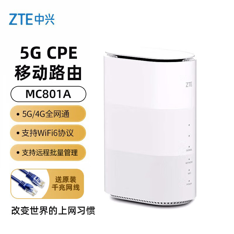 中兴(ZTE) 5G CPE PRO移动路由器 企业工业级cpe/插卡上网/全千兆网口/WiFi6/MC801A价格:1599.00元!