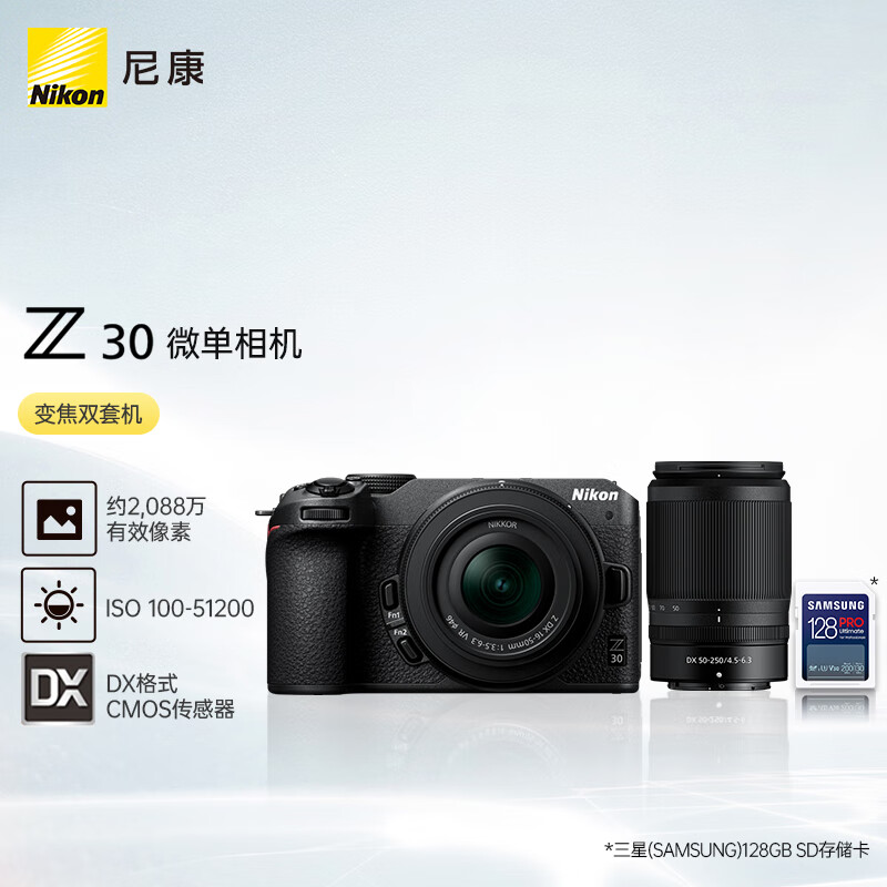 尼康(Nikon)Z 30 微单相机半画幅(尼克尔 Z DX 16-50mm+50-250mm 双镜头) +128GB存储卡价格:9158.00元!
