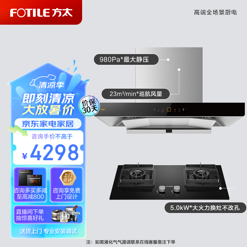 方太抽吸油烟机燃气灶套装 欧式顶吸脱排烟机灶具套餐 家用直流变频 23巡航风量02-EMD22T+TH36B天然气价格:4298.00元!