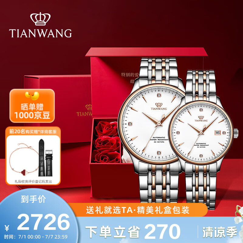 天王(TIAN WANG)手表 表白礼物昆仑系列钢带机械对表GS&LS5876TP.D.TP.W价格:2996.00元!