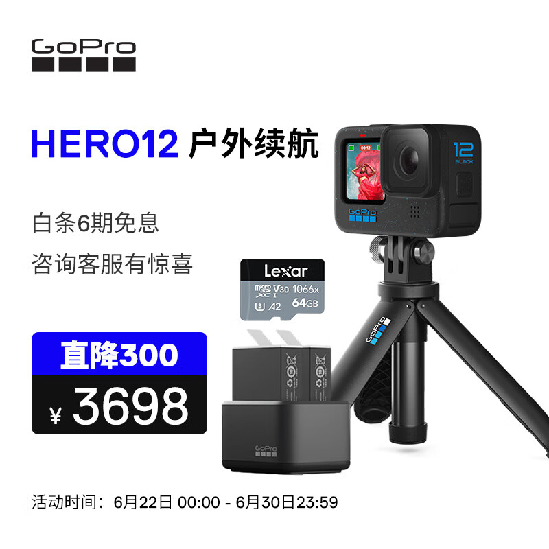 GoPro HERO12 Black运动相机 潜水防抖 vlog数码防水相机 户外续航套餐【shorty+增强双充+64G内存卡】价格:3698.00元!