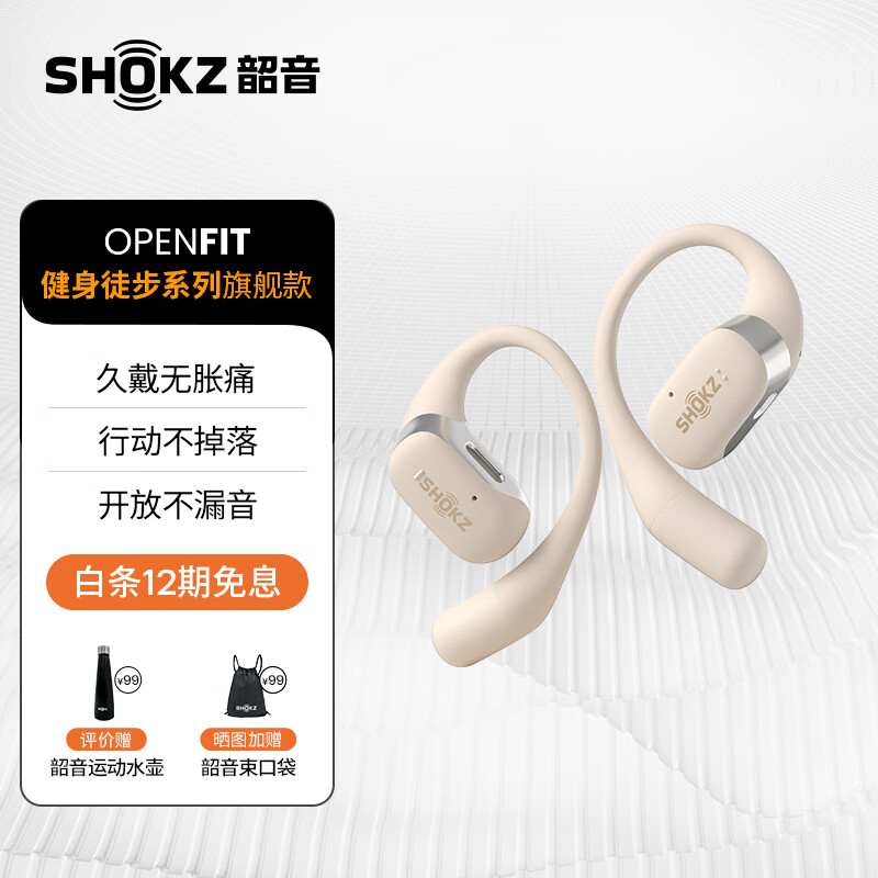 韶音(SHOKZ)舒适圈OpenFit开放式蓝牙耳机不入耳运动跑步长续航通话降噪T910 暖日白价格:1298.00元!