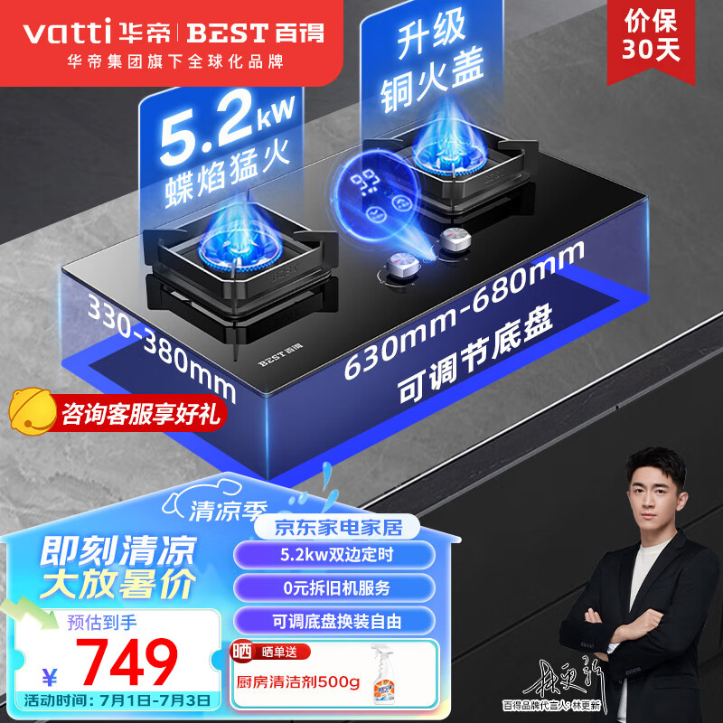 百得(BEST)华帝出品燃气灶 煤气灶双灶 家用炉具 5.2KW大火力 定时灶 嵌入式台式全进风炉具JZT-QE61(天然气)价格:849.00元!