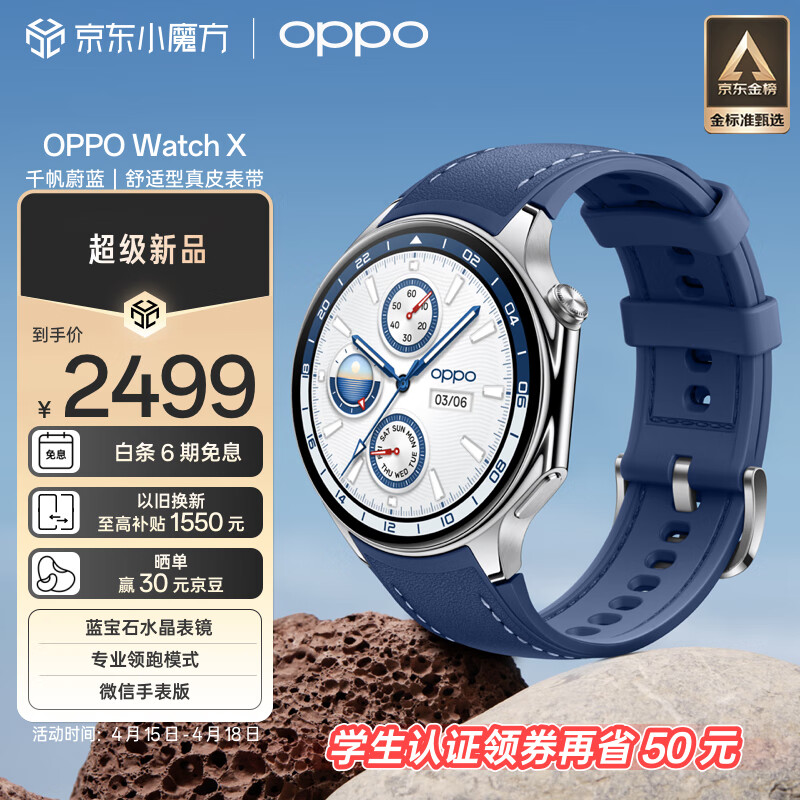 OPPO Watch X 千帆蔚蓝 全智能手表 运动健康手表 男女eSIM电话手表 心率血氧监测 一加价格:2499.00元!