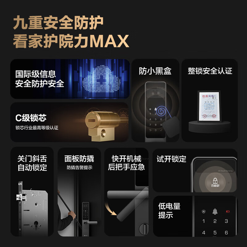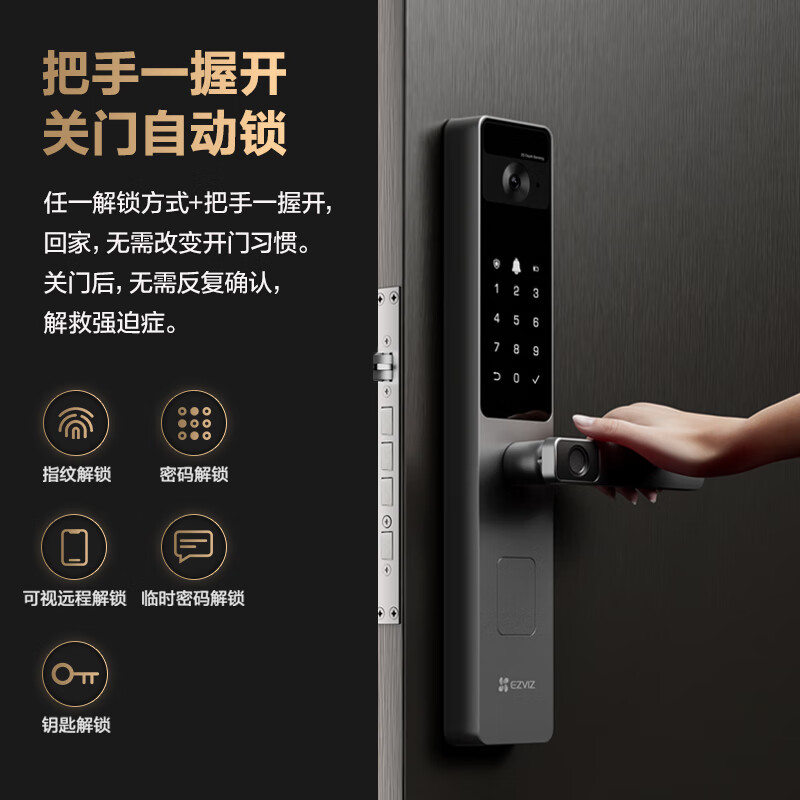 萤石DL20FV智能人脸视频锁 铁门版标准锁 3D人脸识别指纹握开式视频锁 家用全自动猫眼门铃电子门锁价格:1499.00元!