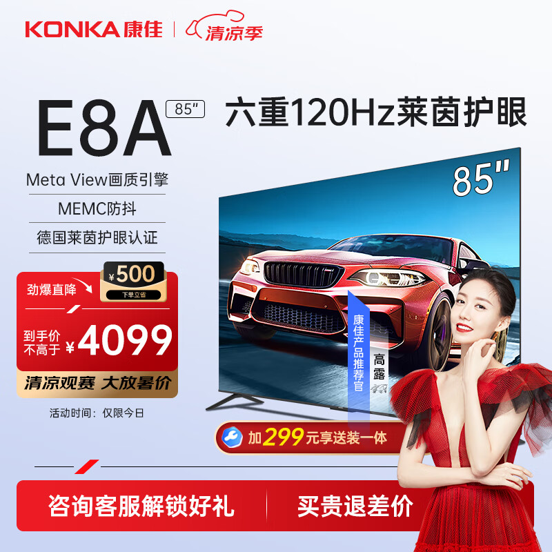 康佳电视 85E8A 85英寸 3+32G 120Hz MEMC护眼电视 4K超清屏 液晶平板电视机巨幕大屏 欧洲杯价格:4099.00元!