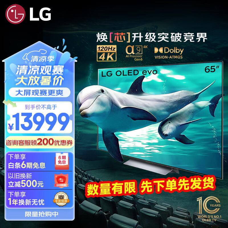 LG 65英寸 OLED65C3PCA 4K超高清屏专业智能游戏电视 120HZ高刷新0.1ms低延迟 (65C2升级款)价格:21999.00元!