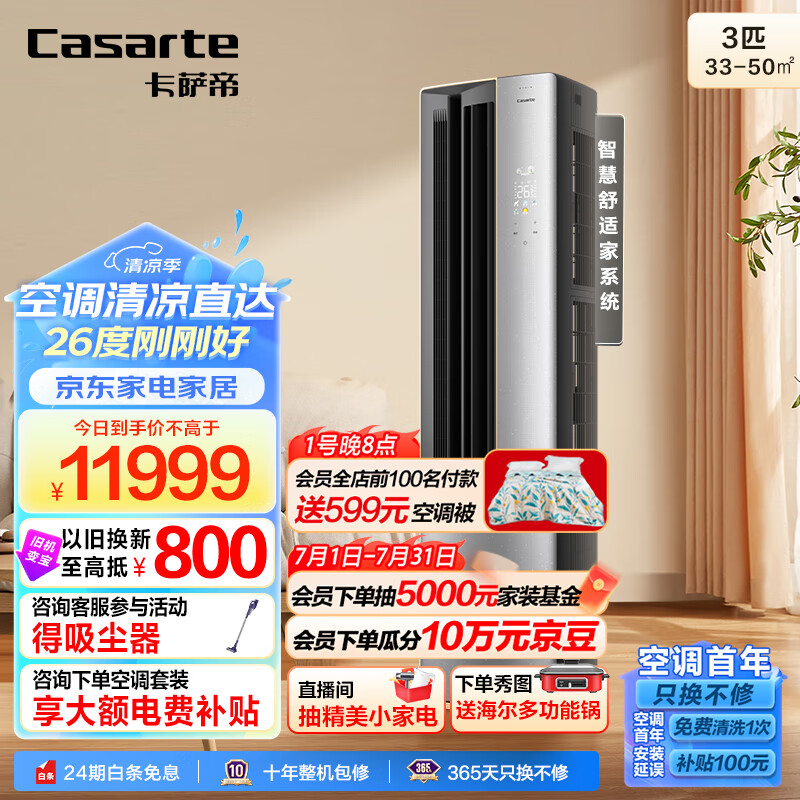 卡萨帝(Casarte)3匹 星云 双极离子除菌 复合软风 立式空调柜机 一级能效 智能变频 CAP7216BAB(81)VU1价格:11999.00元!