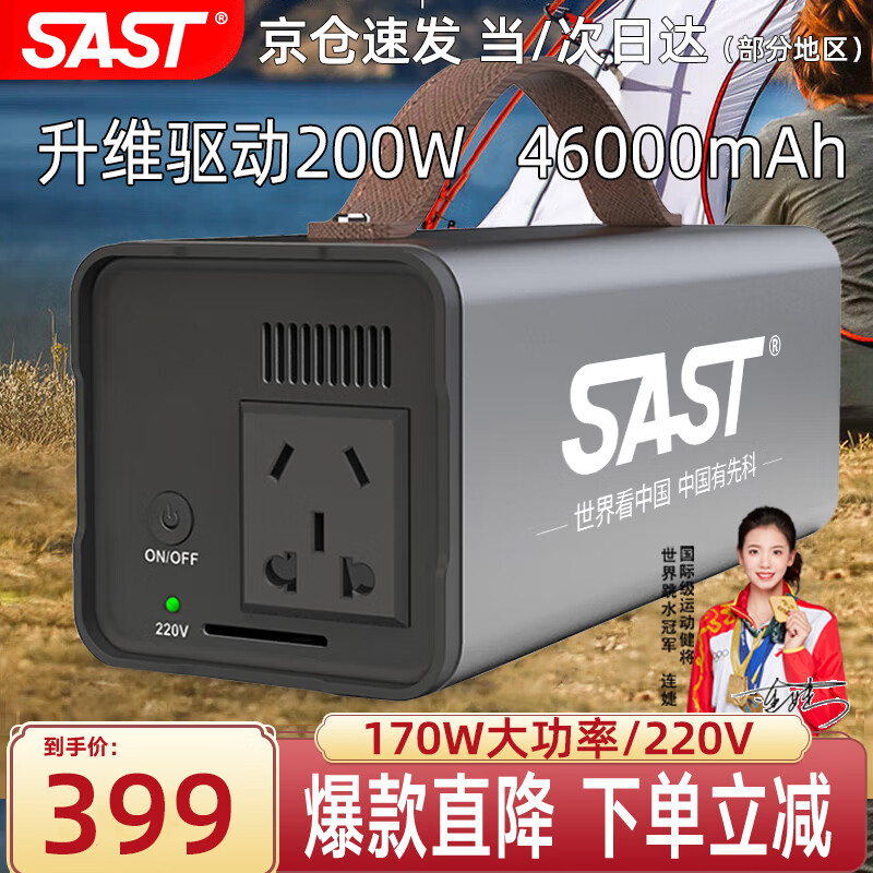 SAST 户外电源300W大功率便携移动电源220V带插座充电宝大容量储能电源价格:478.00元!