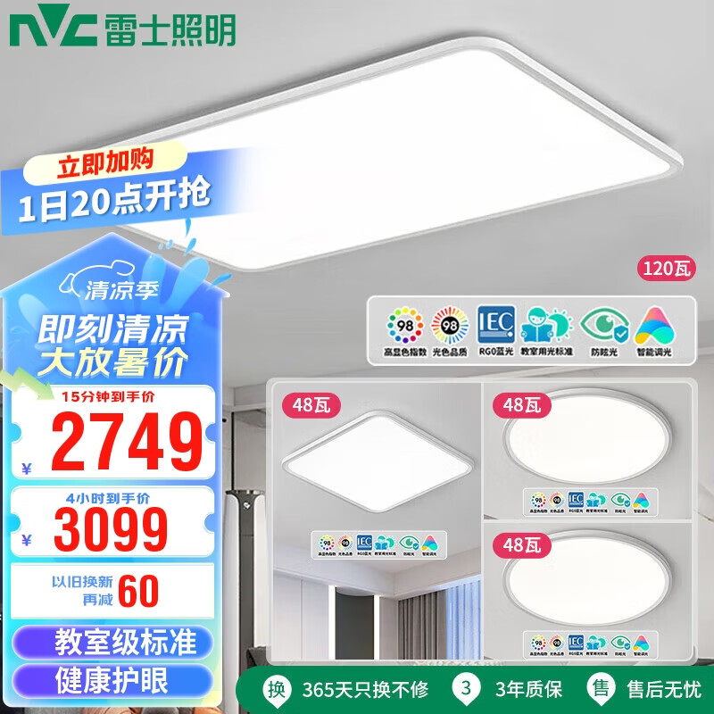 雷士照明(NVC)LED吸顶灯未来光舒适光全屋智控Ra98健康护眼防蓝光灯具三室一厅A价格:4299.00元!