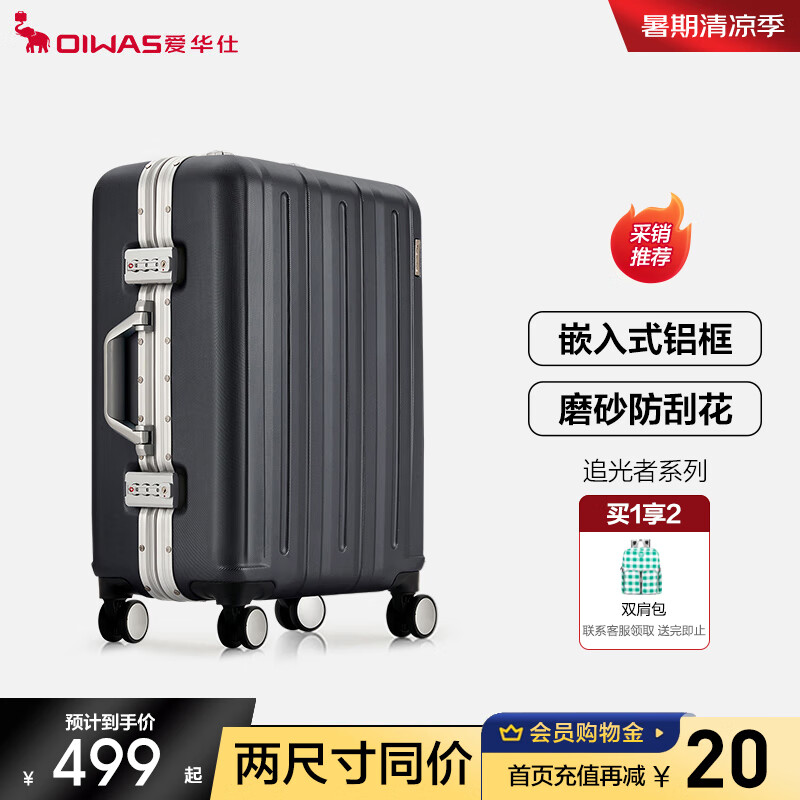 爱华仕行李箱铝框拉杆箱男万向轮登机箱20英寸女旅行箱商务密码箱 灰色价格:649.00元!