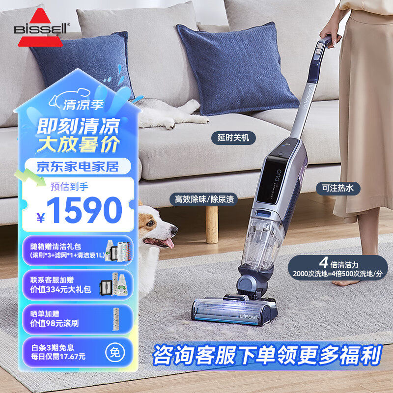 必胜(BISSELL)无线智能洗地机家用吸拖洗一体吸尘器自动清洗可干吸五代5.0DUO 3479Z价格:1590.00元!