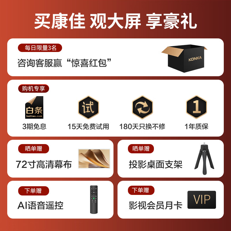 康佳(KONKA)H10 投影仪家用 投影机 智能家用卧室影院(真1080P物理分辨率 四向梯形校正 康佳智能系统 )价格:799.00元!