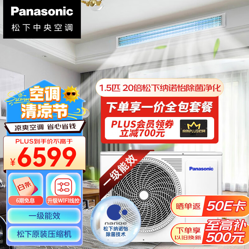 松下(Panasonic)全直流变频家用1.5匹风管机 ZD系列 新一级能效 20倍松下纳诺怡除菌净化 包基础安装CS-E12D0AZ2BD价格:7299.00元!
