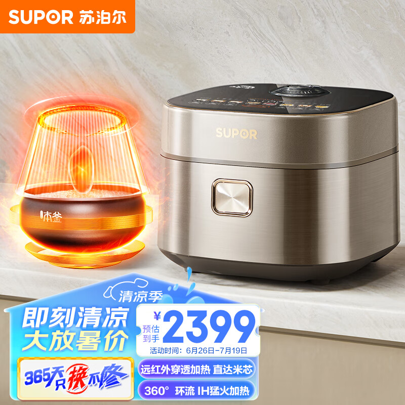 苏泊尔(SUPOR)电饭煲 电饭锅 4L家用多功能大容量远红外穿透加热360环流IH本釜内胆快速饭柴火饭 SF40HC87价格:2399.00元!