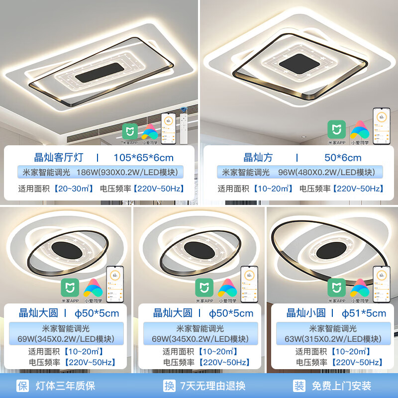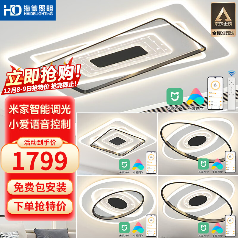 HD米家智能AI语音吸顶灯 led北欧大客厅卧室餐厅灯饰全屋 灯具套餐B价格:2299.00元!