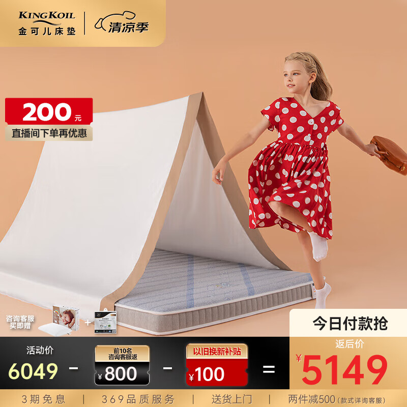 金可儿(Kingkoil)青少年乳胶床垫独立袋装弹簧席梦思软硬适中探险家床垫1.35米×2米价格:5699.00元!