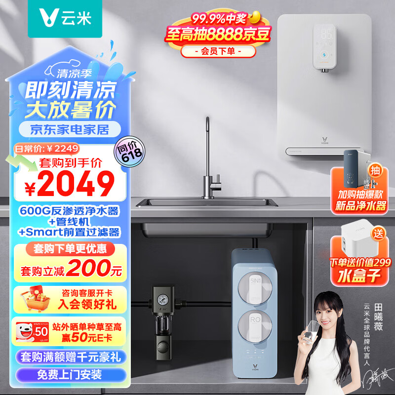 云米(VIOMI)小蓝调600G全屋净水套装净水器+管线机MG2-B+前置过滤器VF4-A三件套家用直饮加热即热净水器净水机价格:2249.00元!