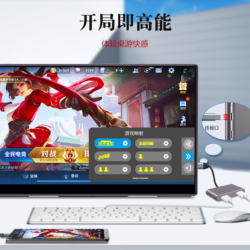 4、用起来很好,主要是这个便携式显示屏是带电池的,没电也能坚持住,可以无线连手机,连电脑平板也很方便。