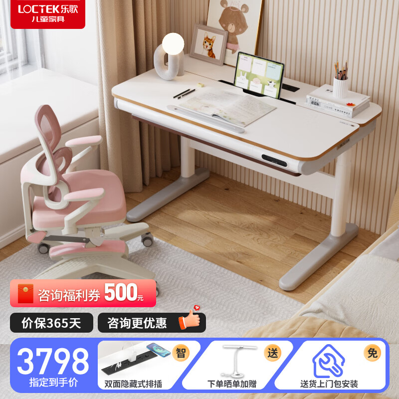 乐歌儿童学习桌实木套装【全龄段电动升降桌】小学写字书桌1.2mT4+A31价格:5148.00元!