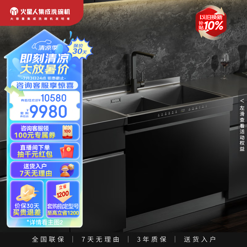 火星人D31集成水槽洗碗机 15套三锅同洗 洗消烘存四合一 热风烘干 一级水效 京东小家智能生态款价格:10680.00元!