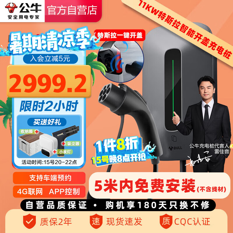 公牛(BULL)新能源汽车交流充电桩适配于特斯拉全系小米su7汽车等 11KW4G款 送基础安装价格:3749.00元!