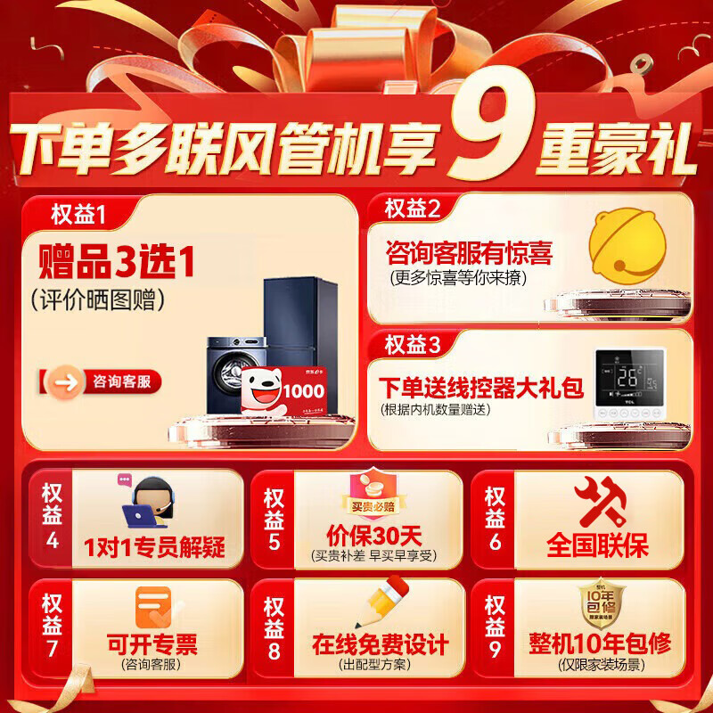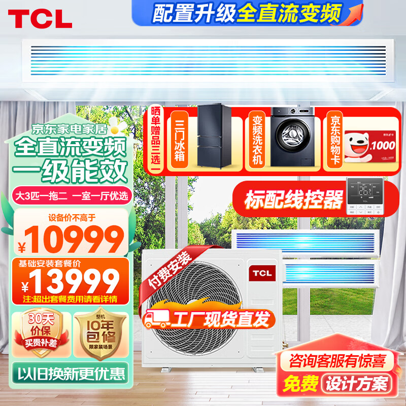 TCL中央空调大3匹一拖二 家用多联机风管机新一级能效全直流变频嵌入式空调 一室一厅 TMV-Vd80W/N1-D价格:10999.00元!