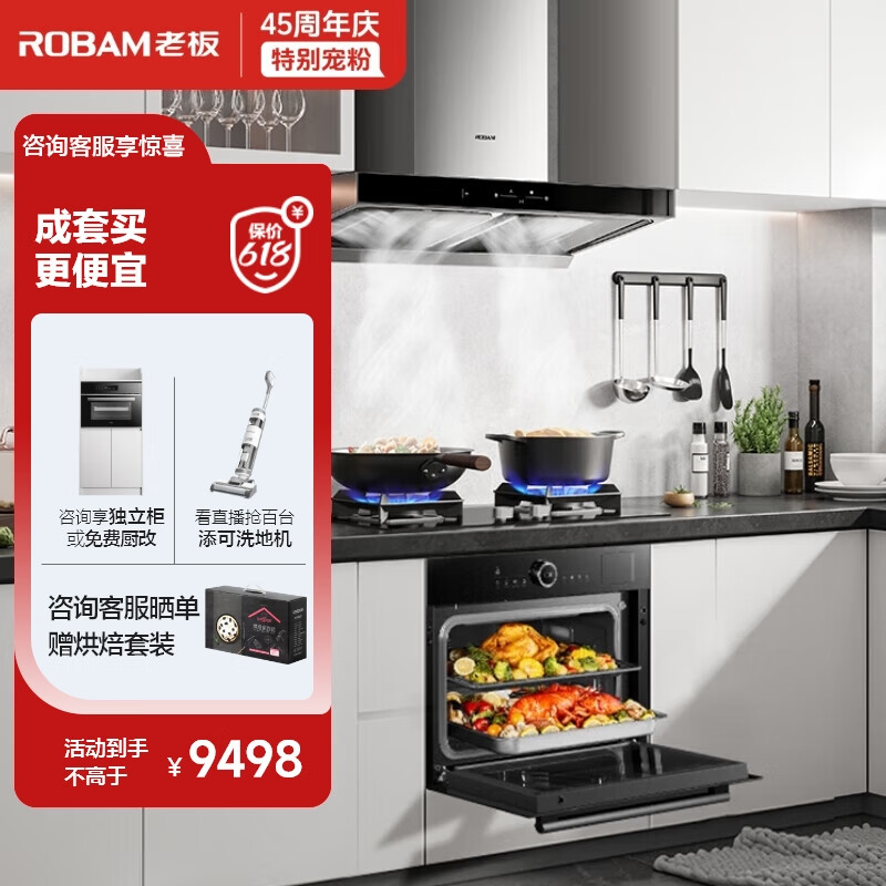 老板(Robam)60D3S+57B2D+CQ9062D欧式烟灶蒸烤套装厨房多件套24风量抽油烟机家用蒸箱烤箱嵌入式一体机价格:9498.00元!