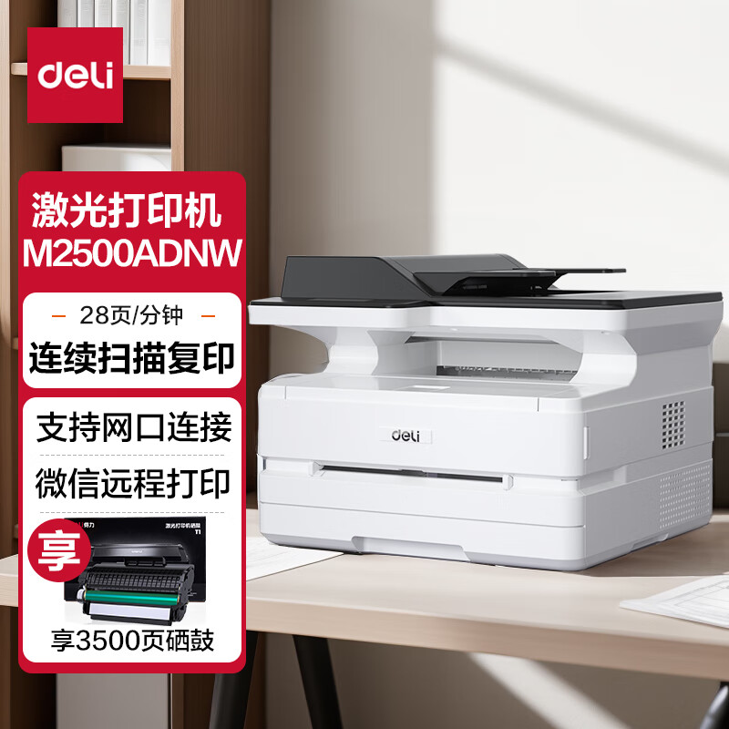 得力(deli)M2500ADNW黑白办公商用三合一A4打印机复印机扫描机多功能一体机 家用无线 自动双面激光打印机价格:1699.00元!