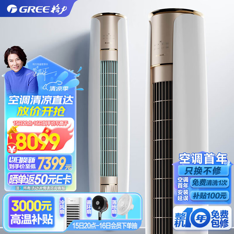 格力(GREE)空调 京东小家智能生态 3匹 云焕 1级能效变频 客厅空调立式空调柜机KFR-72LW/NhDe1BAj价格:8099.00元!