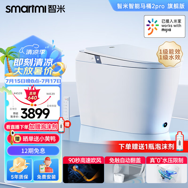 智米(SMARTMI)智能马桶泡沫盾无水压自动翻盖智能坐便器米家2PRO价格:4509.00元!