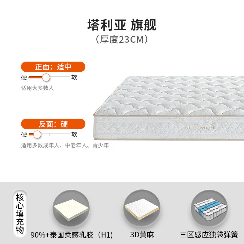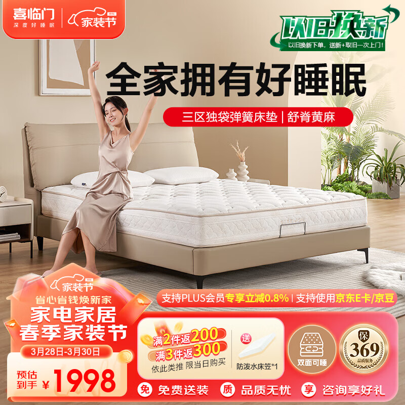 喜临门高纯乳胶 三区独袋弹簧床垫 3D黄麻床垫 塔利亚旗舰版 1.5x1.9米价格:1998.00元!