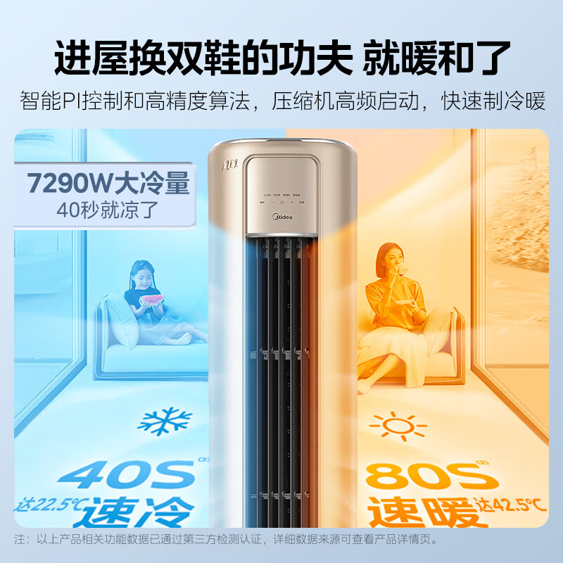 美的(Midea)3匹 风尊 新一级能效 变频冷暖 客厅空调 空调立式 智能柜机 KFR-72LW/N8MZB1价格:6699.00元!